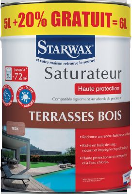 Différents types de finitions sont disponibles : Du fait de sa mise en œuvre horizontale entraînant un phénomène de stagnation de l'eau, la terrasse bois est sans aucun doute l'usage le plus contraignant pour ce matériau naturel. Il existe des saturateurs colorés (qui renforcent la teinte d'origine du bois) et des saturateurs incolores : Le guide complet pour poser sa terrasse bois facilement. Huile saturateur pour bois en phase aqueuse.